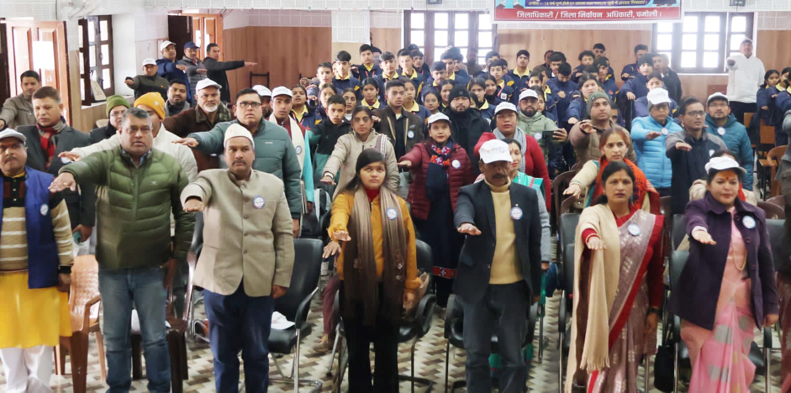 चमोली। 16वें राष्ट्रीय मतदाता दिवस के अवसर पर शनिवार को राजकीय इंटर कॉलेज गोपेश्वर में एक भव्य कार्यक्रम का आयोजन किया गया। कार्यक्रम का शुभारम्भ मुख्य अतिथि जिलाधिकारी गौरव कुमार द्वारा दीप प्रज्वलित कर किया गया। इस दौरान विद्यालय की छात्राओं द्वारा रंगारंग सांस्कृतिक कार्यक्रमों की प्रस्तुति दी गयी।