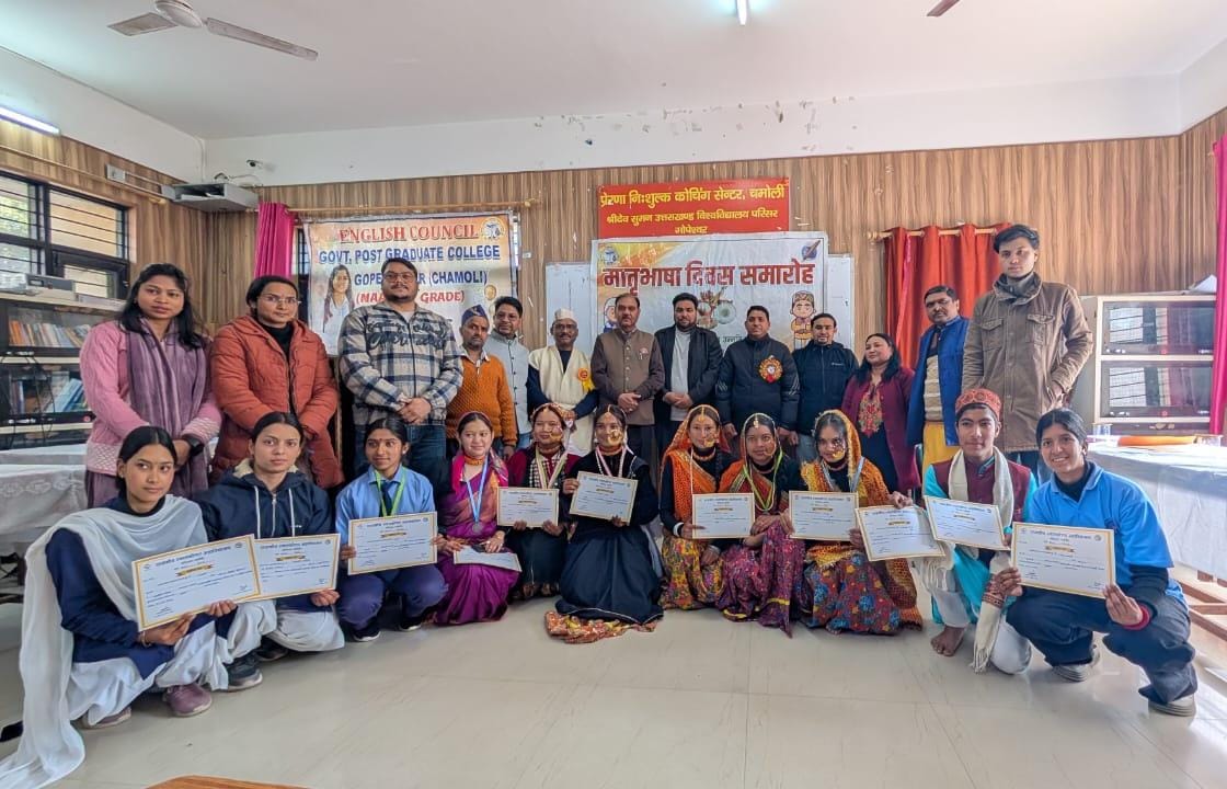 चमोली। गोपेश्वर महाविद्यालय में शनिवार को अंतर्राष्ट्रीय मातृभाषा दिवस बड़े धूमधाम से मनाया गया। अंग्रेजी विभागीय परिषद द्वारा इस दिवस को गढ़वाली भाषा संरक्षण दिवस के रूप में मनाया गया।